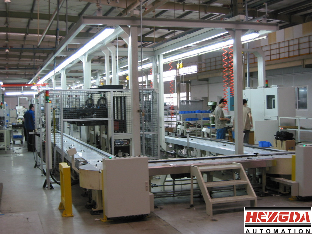 隨著汽車工業(yè)的發(fā)展,發(fā)動機裝配線 的自動化程度越來越高,發(fā)動機裝配線主要由活塞連桿分裝線、缸蓋分裝線、總成裝配線組成。具體的設(shè)備大致包括:摩擦輸送線、托盤、打號機、激光標簽打印機、翻轉(zhuǎn)機、缸孔噴油裝置、活塞插入輔助裝置、曲軸分組號攝像識別裝置、主軸瓦選配裝置、氣門插入翻轉(zhuǎn)臺、氣門拍打裝置、活塞銷壓裝機、潤滑油噴嘴壓裝及檢測機、氣門油封壓裝機、缸蓋水管接頭壓裝機、火花塞導(dǎo)管壓裝機、主軸承蓋螺栓擰緊機、連桿螺栓擰緊機、缸蓋螺栓擰緊機、凸輪軸蓋螺栓擰緊機、正時鏈蓋擰緊機、油底殼擰緊機、曲軸皮帶輪螺栓擰緊機、主軸承蓋螺栓松開機、連桿螺栓旋松機、總線控制系統(tǒng)與信息管理系統(tǒng)、裝配線工具、量檢具、通用料架、智能料架、冷試臺架、機械挺柱選配裝置、氣門鎖夾壓裝機、涂膠及機油加注設(shè)備、泄漏檢測設(shè)備、曲軸端隙及扭矩測量裝置、曲軸回轉(zhuǎn)力矩檢測+油道試漏、MPI試漏機、缸蓋泄漏試驗機、長缸油路試漏機、長缸水路試漏機。